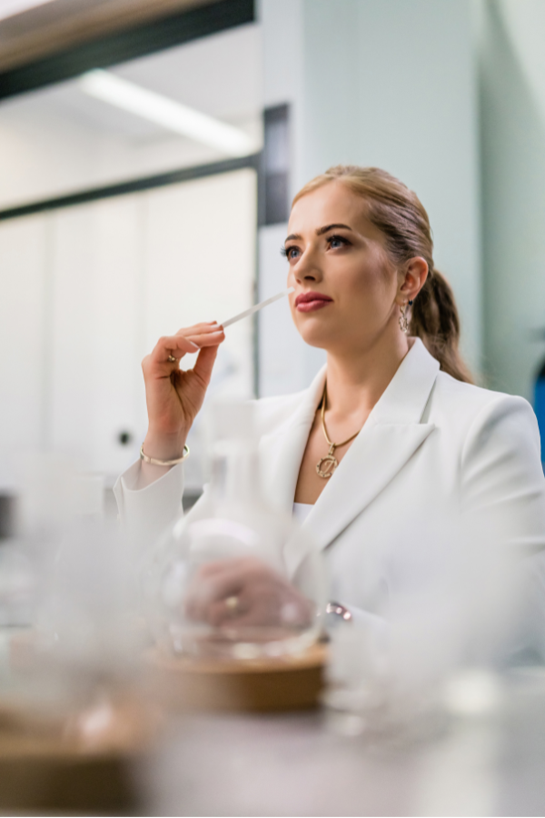 Dobór składników, testy skuteczności, połączenie feromonów z nutami kwiatowymi, drzewnymi czy orientalnymi – wszystko po to, aby finalny efekt był wyjątkowy.