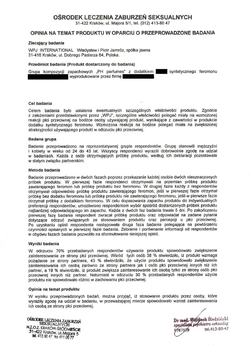 badanych osób odczuło większe zainteresowanie ze strony płci przeciwnej podczas stosowania perfum Just You z dodatkiem feromonów: 2-acetylothiophene.