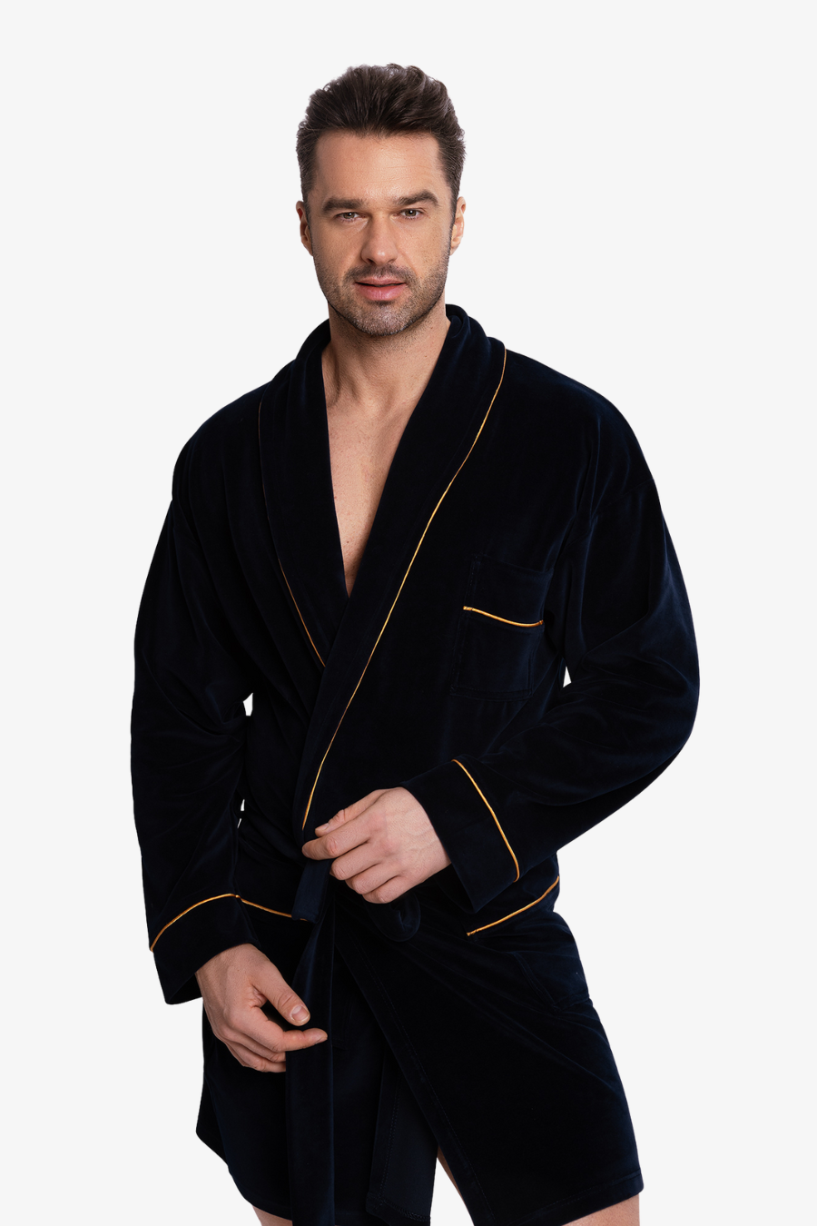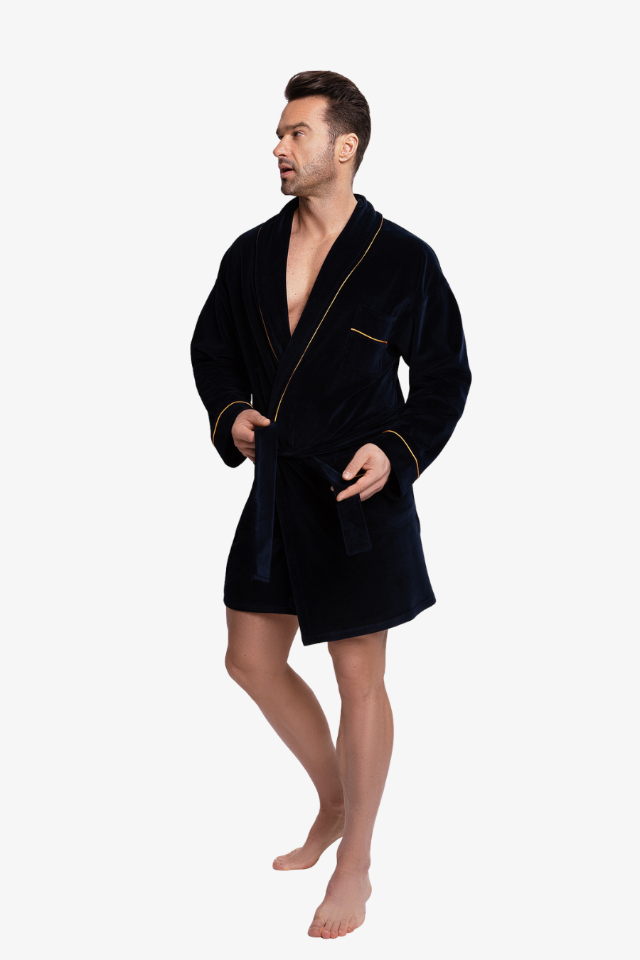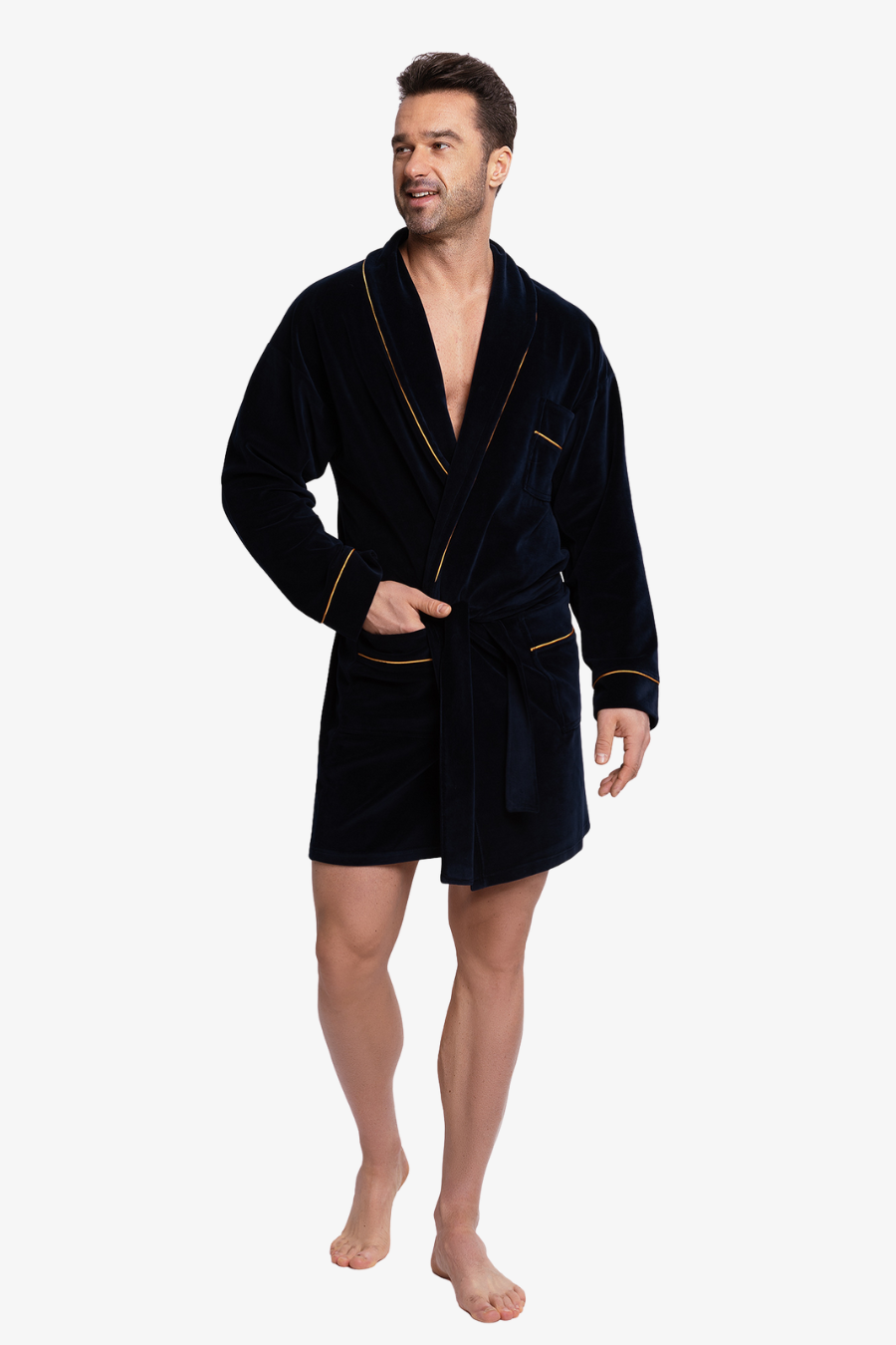 Krótki, bawełniany szlafrok męski w kolorze granatowym Wealth