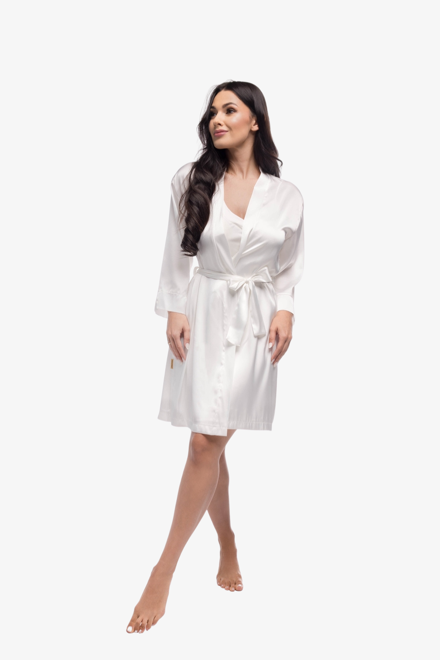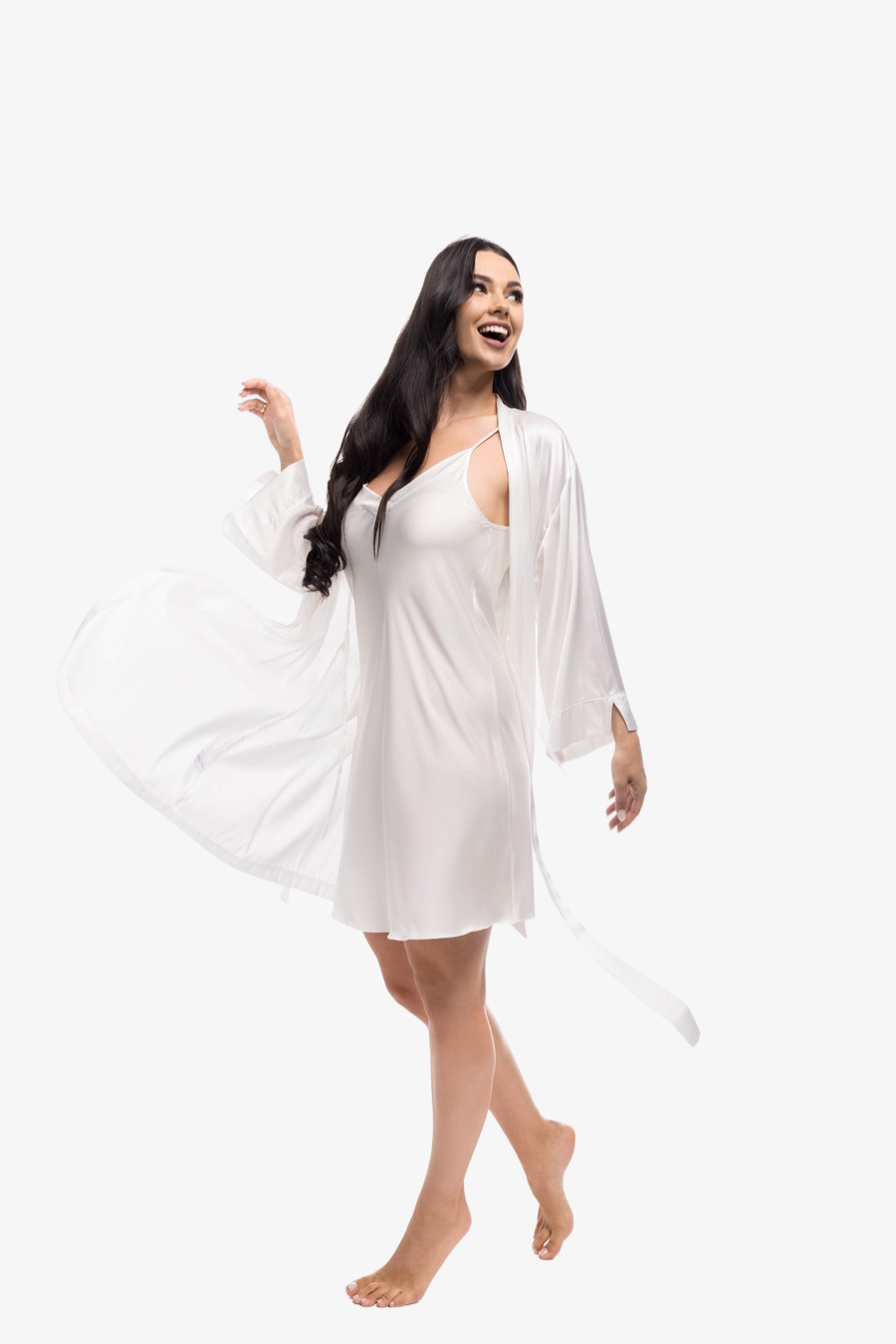 Zestaw – koszulka nocna i szlafrok w kolorze kremowym