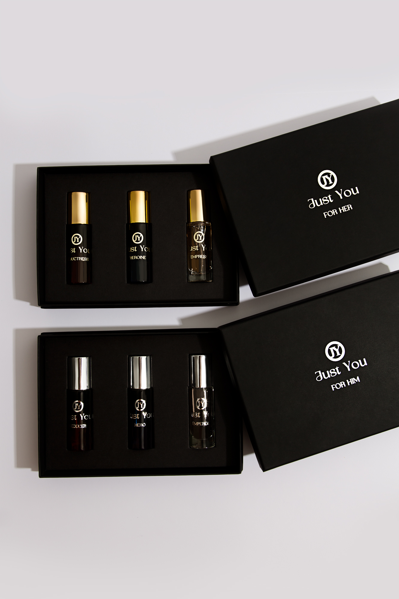 Nie możesz się zdecydować, który zapach wybrać? Podkreśl swoją męskość i pewność siebie dzięki zestawowi męskich perfum z feromonami od Just You. Nasz ekskluzywny zestaw zawiera trzy wyjątkowe kompozycje zapachowe: Seducer, Emperor i Hero w buteleczkach o pojemności 10 ml, które zostały stworzone, aby odzwierciedlić różne aspekty męskiego charakteru i stylu życia. Każdy zapach w zestawie został wzbogacony o feromony, które zwiększają Twoją atrakcyjność i pewność siebie.